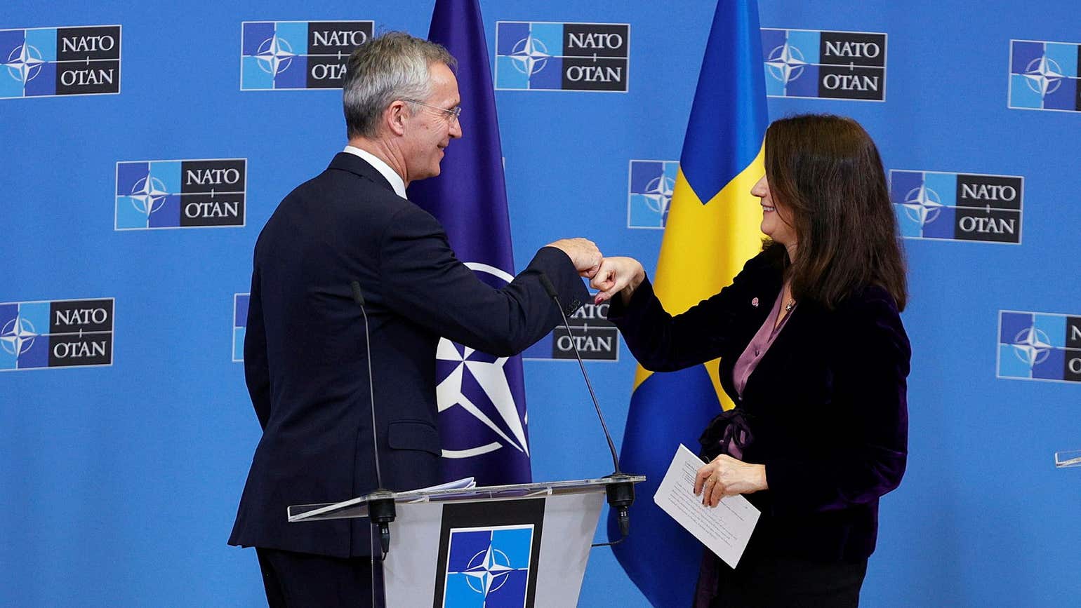 | Foto: Olivier Matthys/AP. Utrikesminister Anne Linde och NATO:s generalsekr. Jens Stoltenberg på en pressträff i Bryssel i år |
